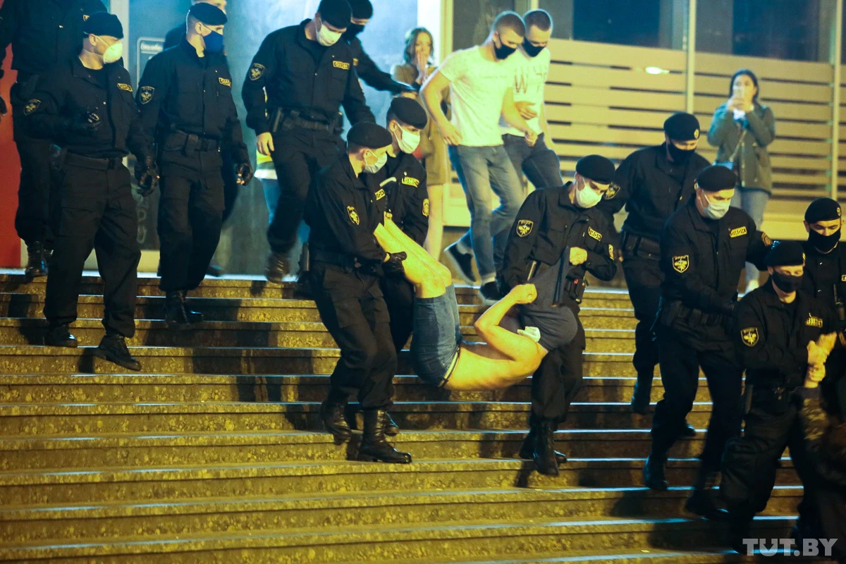 Там и произошла очередная облава омоновцев. Как сообщает TUT.BY, несколько сот человек собралось на Немиге: они свистели и хлопали в ладоши, кричали «Позор!» и «Уходи!», сигналили автомобили. Задержания прошли и здесь, и в районе Романовской Слободы.