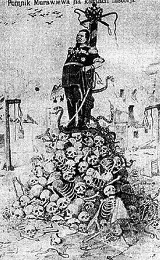 В марте 1864 года в Вильне повесили Кастуся Калиновского. Историки отмечают, что всего за годы правления Муравьева было казнено 128 человек. Более 10 тысяч человек было отправлено в ссылку вглубь России.