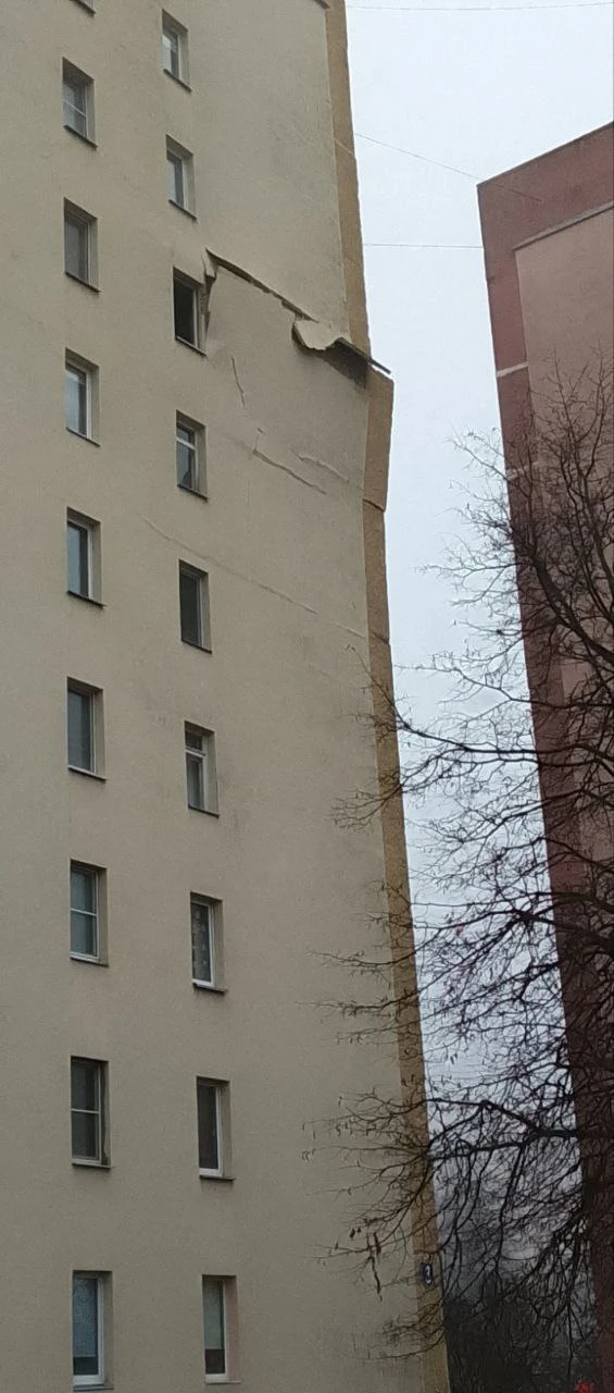 Одну из наружных плит дома вывернуло наружу, обрушились плиты перекрытий как на седьмом этаже, где случился инцидент, так и этажом выше и ниже, также выбило окна.